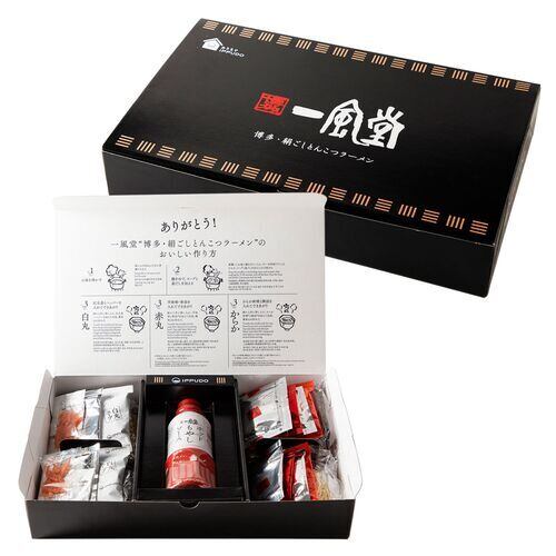 創業当時から今に引き継ぐ一風堂の『熟成なめらか白丸』と白丸をベースにコクと深みを追求した『濃厚コク旨赤丸』に加え、一風堂の隠れ人気メニューである「うま辛もやし」をお手軽に調理いただける『ホットもやしソース』を詰合せました。一風堂のお店の味をお楽しみ下さい。ラーメンはお鍋一つで調理できる「煮込みタイプ」