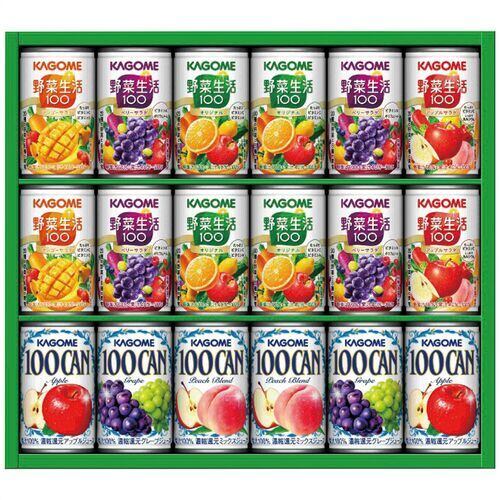 野菜&フルーツのおいしさが人気の「野菜生活100」と100%ジュースのベストセラー「KAGOME100CAN」の詰め合わせです。